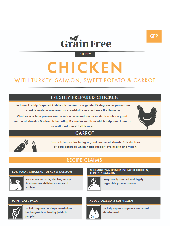 Europa Puppy is a 100% natural and grain-free food specially balanced, like no other food on the market, by 60% meat/fish and 40% vegetables, fruits and herbs. Freshly prepared chicken is the main ingredient in this recipe, with other lovely ingredients like turkey, salmon, peas, carrot and sweet potato, altogether making a delicious dinner for man's best friend. With reduced carbohydrate levels due to no nasty cereals or grains, Europa dog food makes the perfect complete and balanced diet for all puppies all sizes.